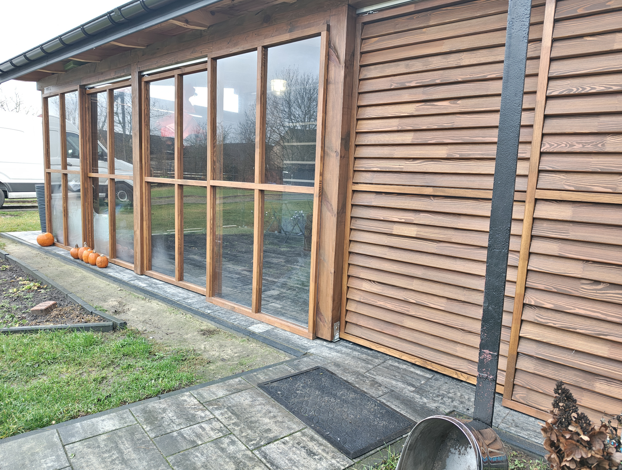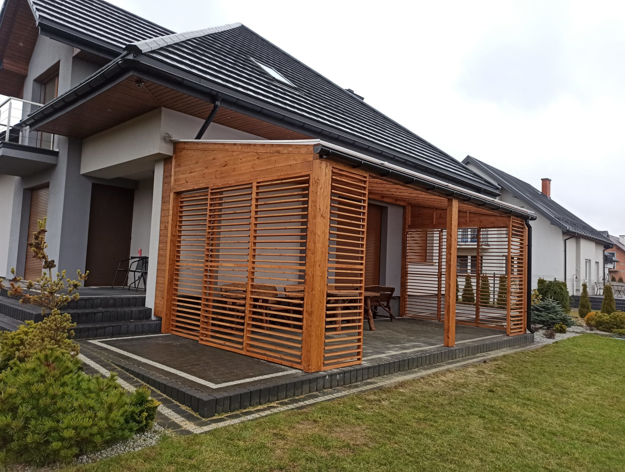 Panele żaluzjowe regulowane zewnętrzne wykonywane są z drewna sosnowego bezsęcznego, wysuszonego komorowo i klejonego metodą mikrowczepu. Deseczki mają fakturę drewna szczotkowanego, natomiast ramy są wykonane z sosny klejonej warstwowo i szlifowanej. Panele dostępne są w zakresie szerokości od 60 do 120 cm oraz wysokości od 100 do 300 cm, a czas realizacji zamówienia wynosi około 20 dni roboczych. Drewno jest dwukrotnie impregnowane renomowaną lazurą olejną Osmo, uznawaną za jeden z najlepszych i najdroższych środków do zabezpieczania drewna dostępnych na rynku. Podana cena dotyczy 1 m² gotowego, pomalowanego produktu.